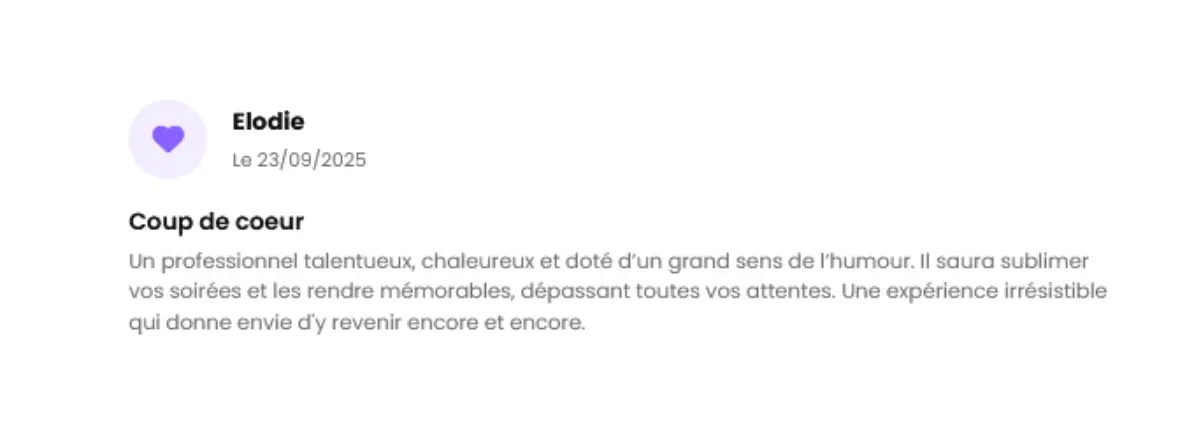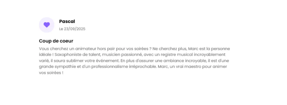 Que ce soit pour un cocktail lounge, un mariage ou une soirée deep-house, vos retours permettent aux futurs organisateurs de projeter l’ambiance de leur propre événement.